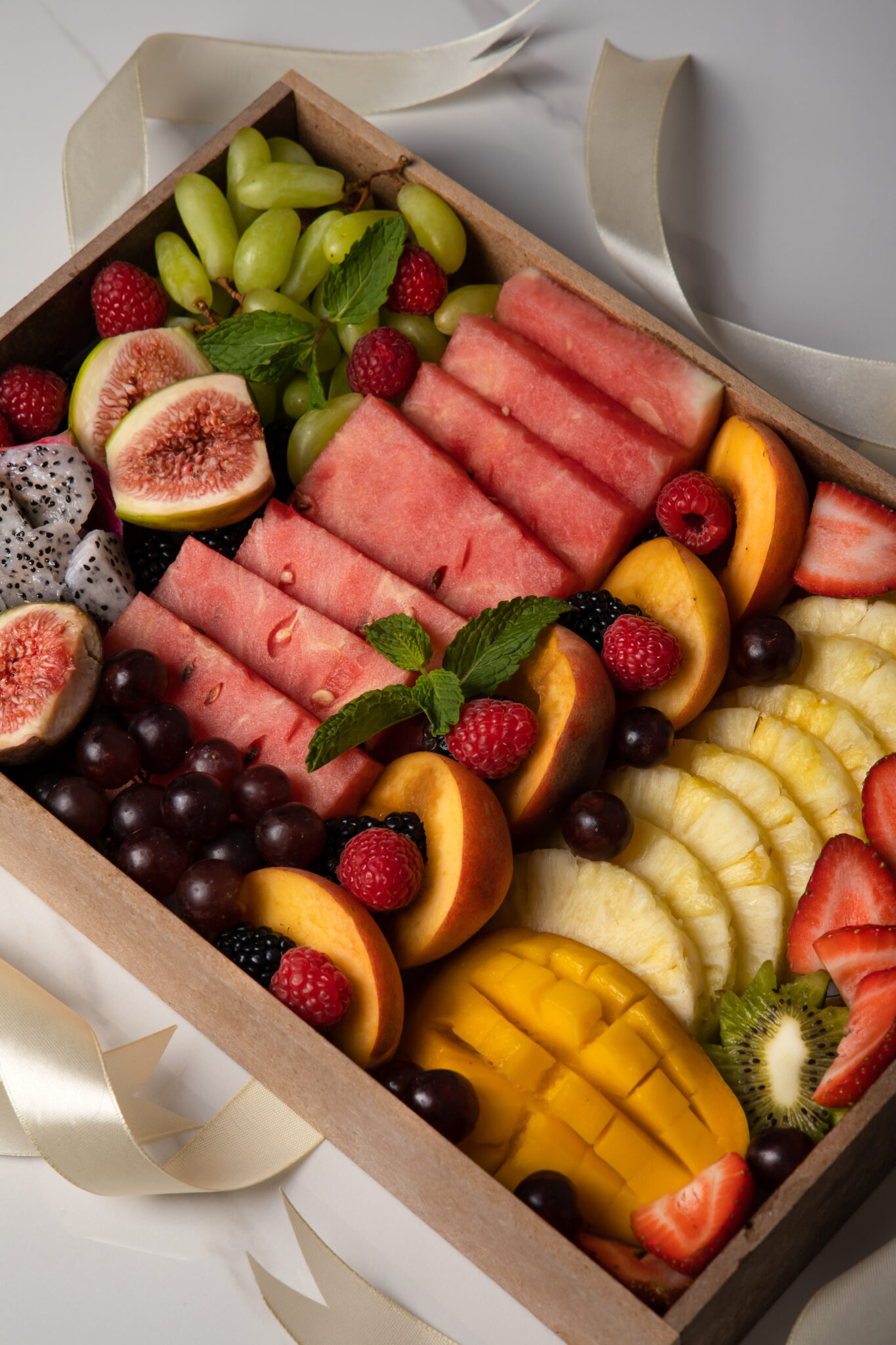 A vibrant selection of fresh, seasonal fruits, beautifully arranged and served chilled!
