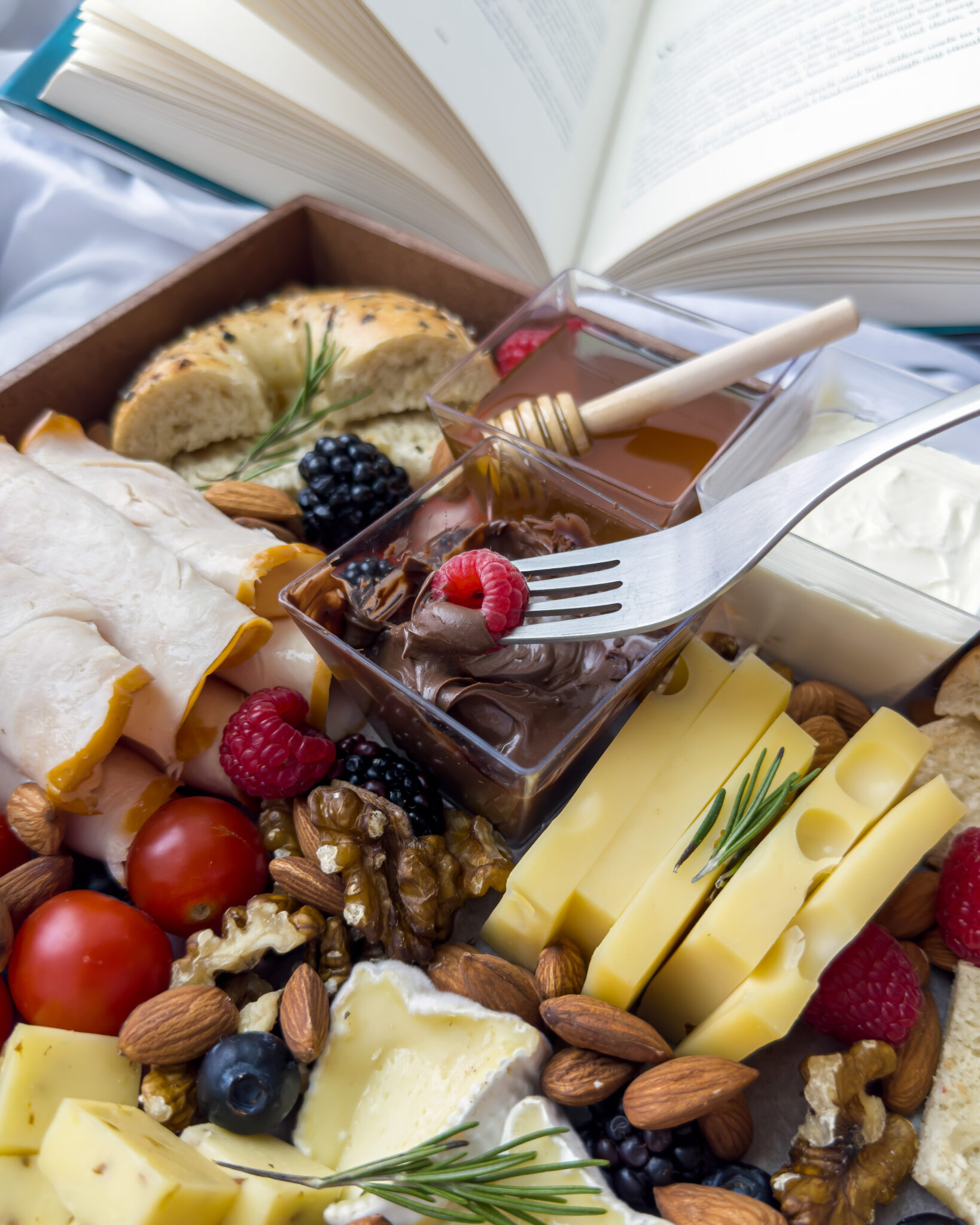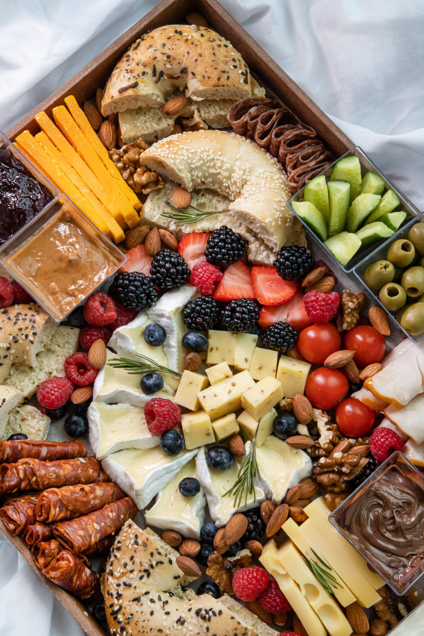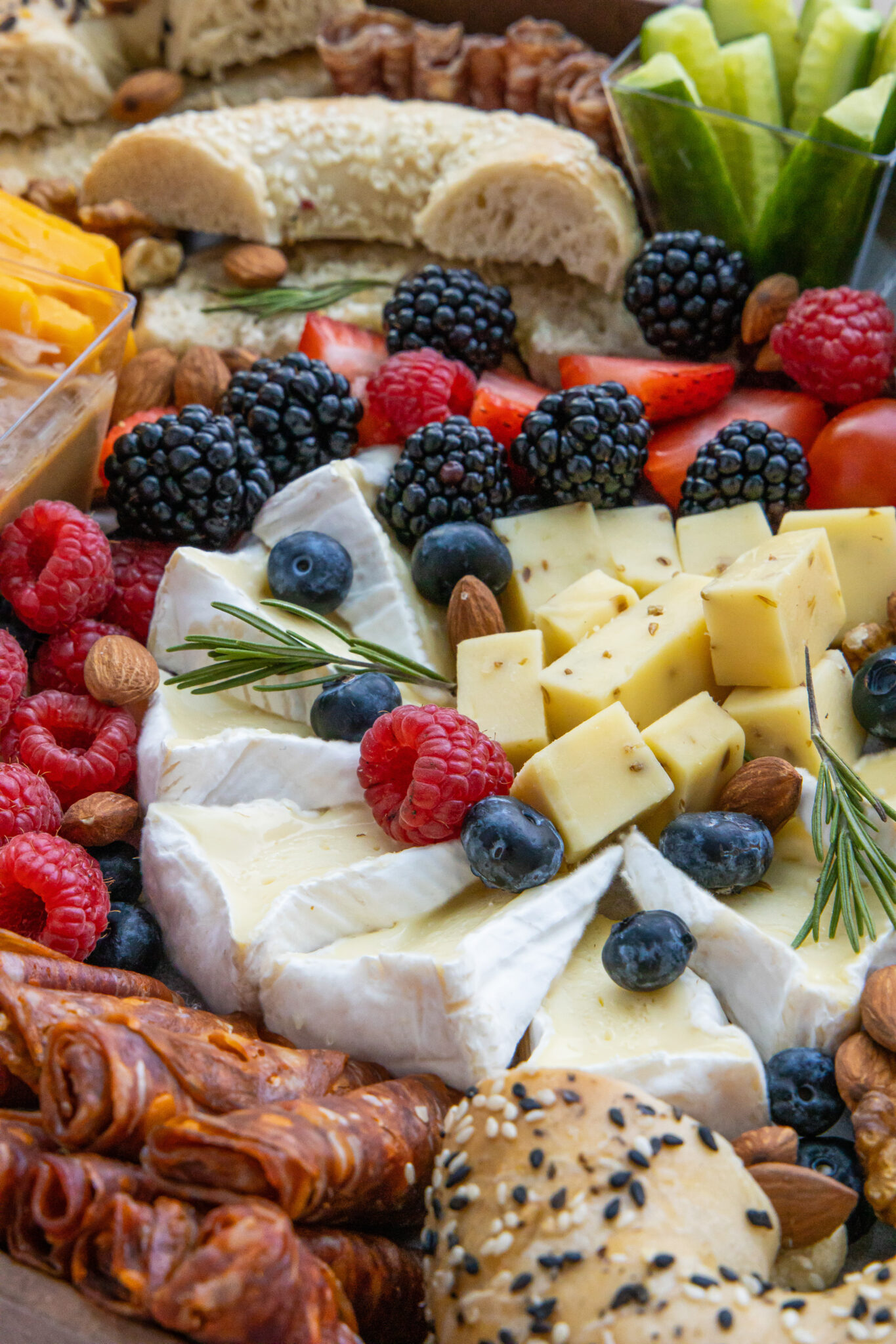 Fruits, Vegetables & Nuts: Raspberries, Blackberries, Strawberries, Blueberries, Cherry Tomatoes, Cucumbers. Red Grapes, Strawberries, Roasted Walnuts & Almonds.