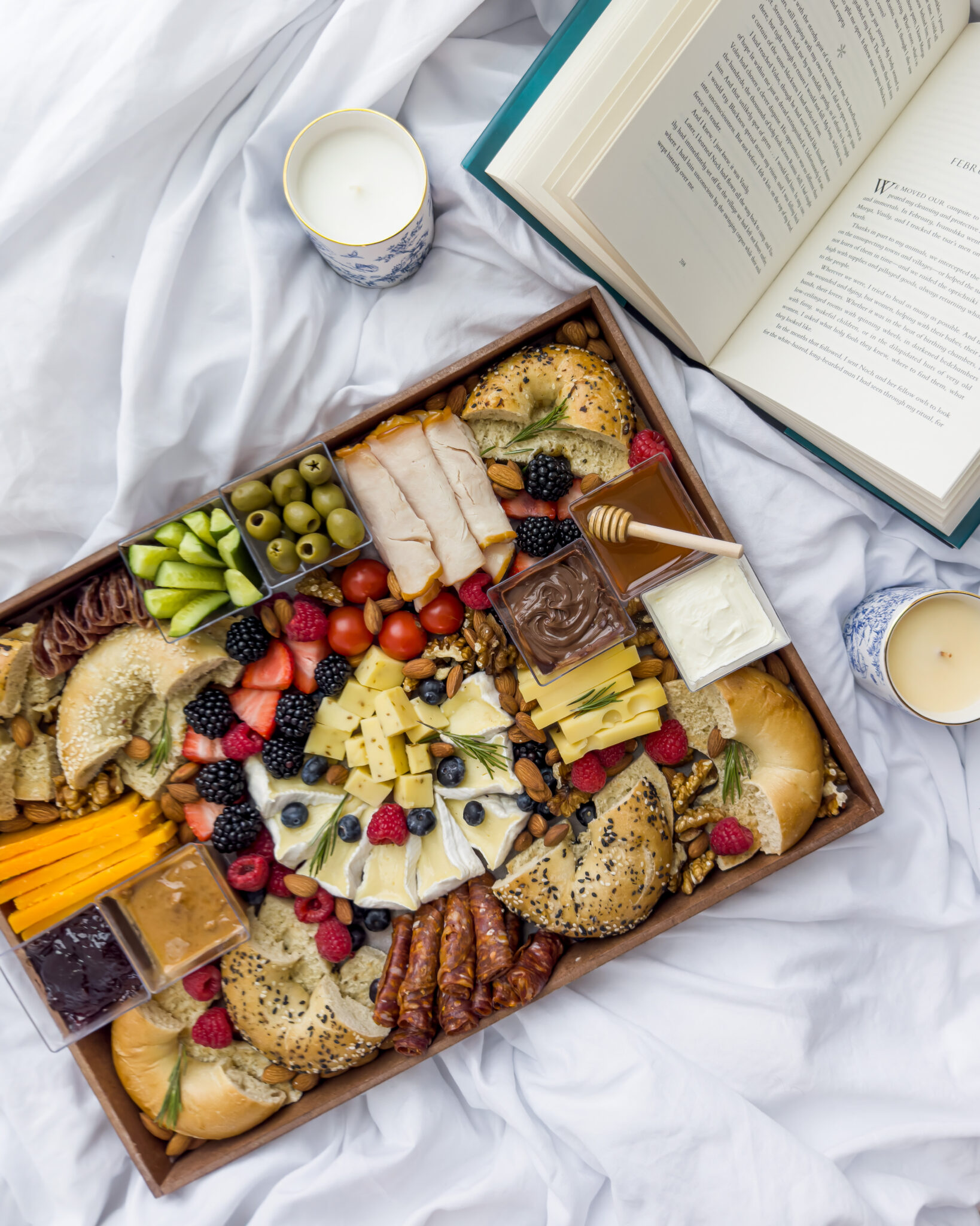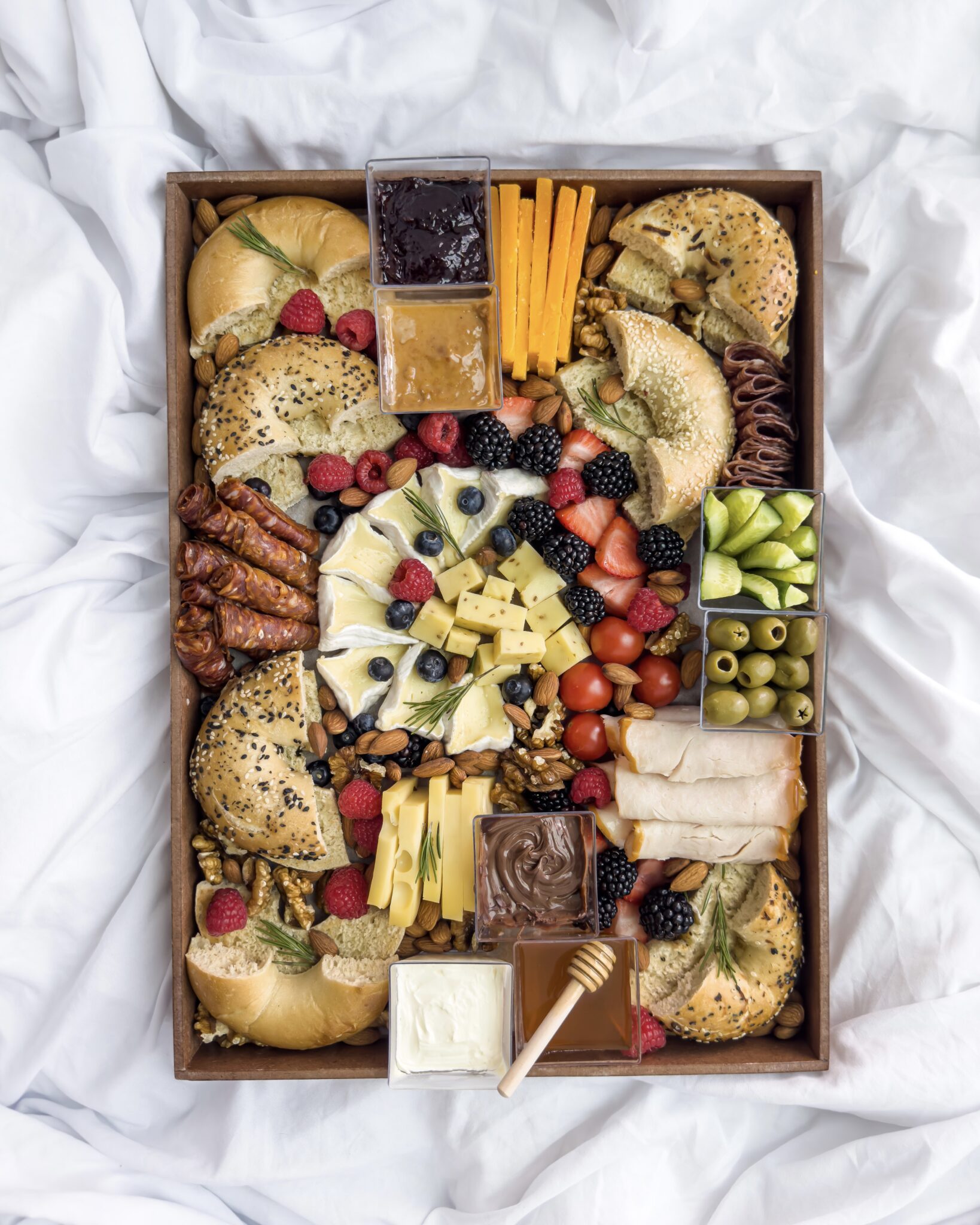 Condiments: Spanish Olives, Cream Cheese, Chocolate Spread, Peanut Butter, Jam.