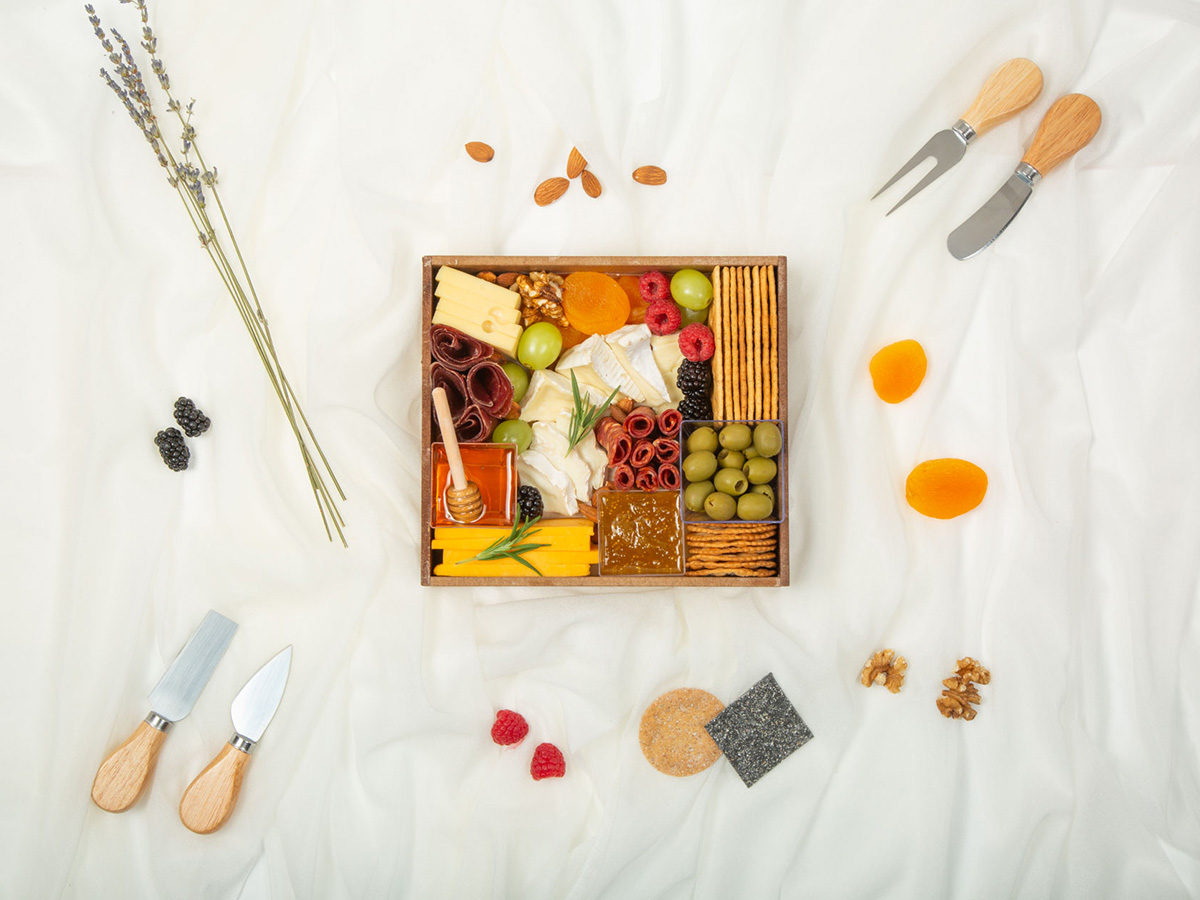 Condiments: Spanish Olives, Homemade Fig Jam, Organic Honey, White & Whole Wheat Crackers.