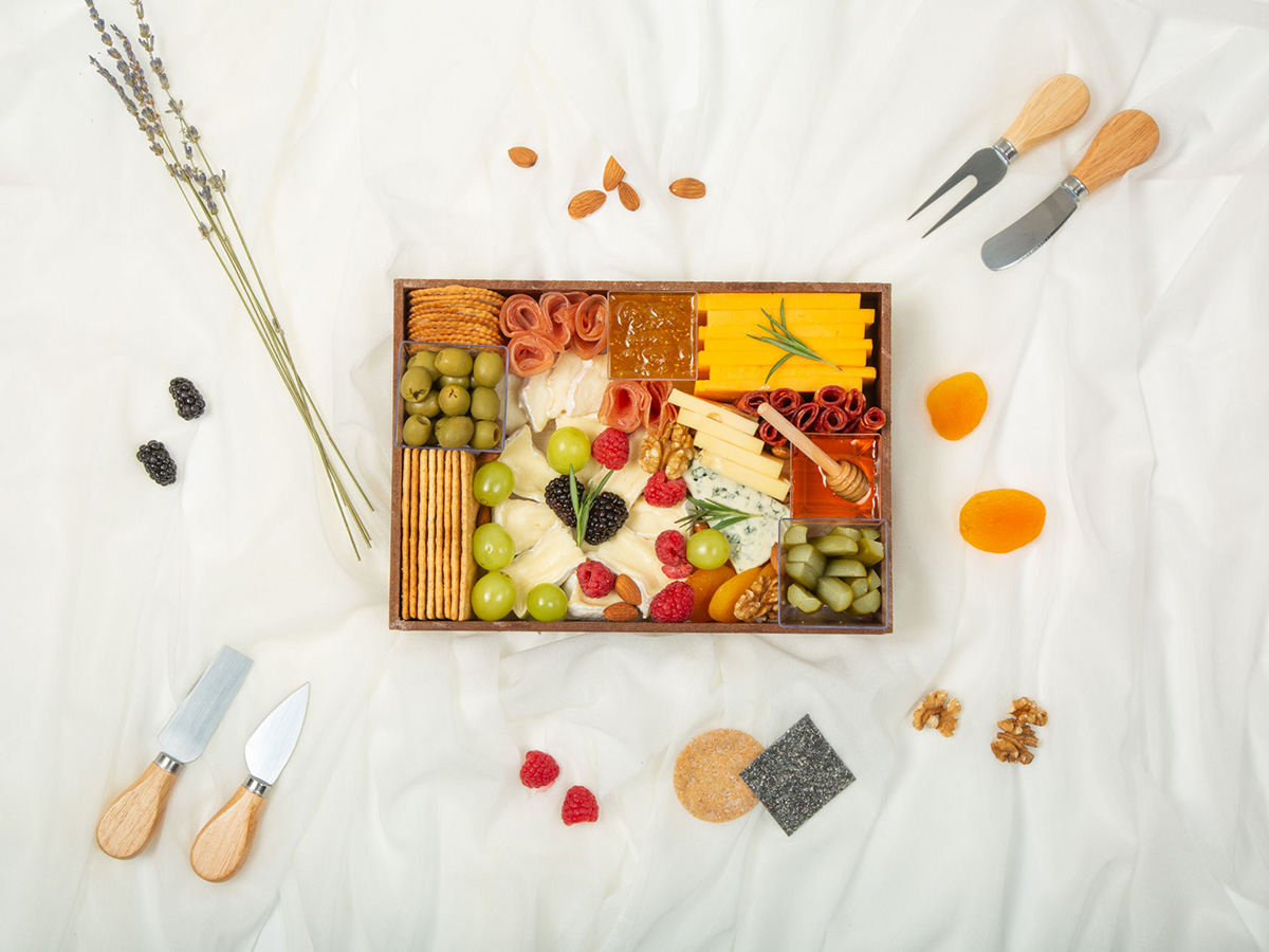 Condiments: Spanish Olives, Pickles, Homemade Fig Jam, Organic Honey, White & Whole Wheat Crackers.