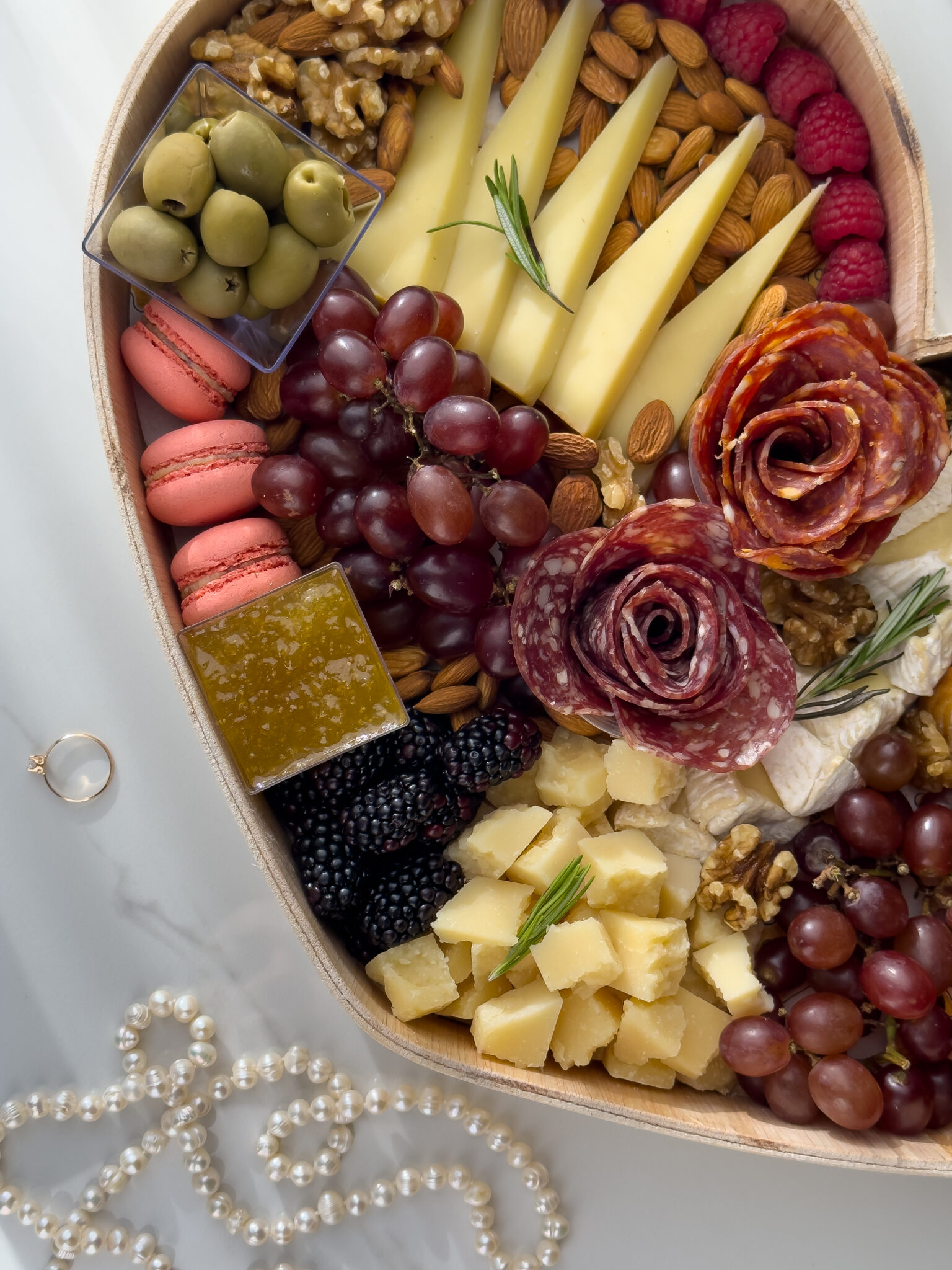 Condiments: Spanish Olives, Homemade Fig Jam, Organic Honey, Biscuit Hearts